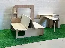 Kit de muebles camper fabricados en corte CnC en tablero de abedul u ocumen contrachapado y aplacado HPL. Hechos a medida para Volkswagen Transporter T5 y T6. Viene para instalar y atornillar con los pasacables hechos por detrás y una calidad inmejorable. Es modular tanto para Transporter larga como corta, con un simple módulo podemos adaptar a una u otra. Persianas de aluminio y PVC de primera calidad cama multiarcón.
